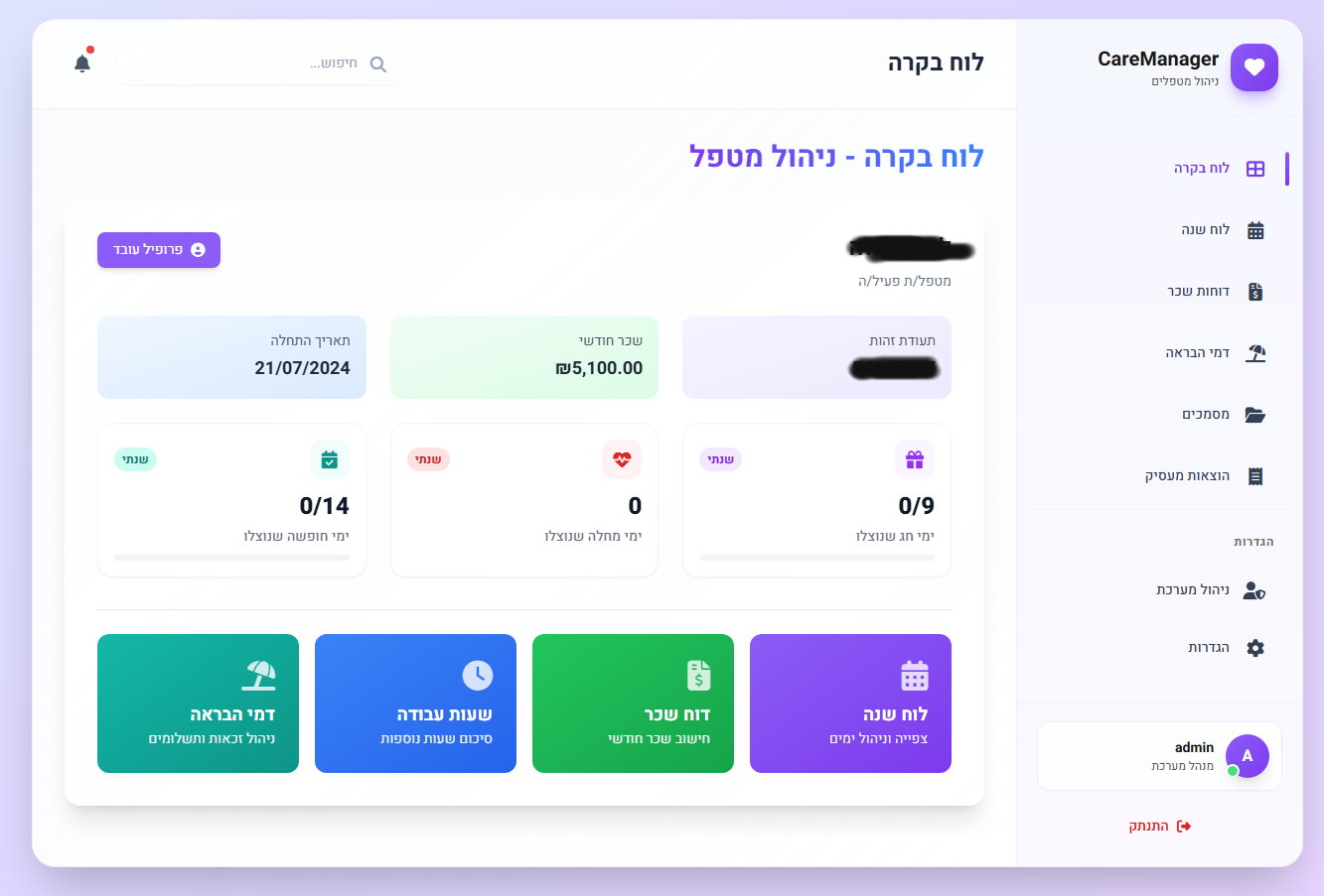 המערכת נבנתה במטרה לספק מענה מלא ומדויק לניהול זכויות עובדים זרים בישראל המועסקים על ידי משפחות שלא בהכרח מצליחות להשתלט ולהבין איך הכל עובד. בדף זה אפרט את המנגנונים הטכניים המורכבים הפועלים בתוך המערכת, המאפשרים לכל מעסיק לנהל את העובד בראש שקט ובתיעוד מלא.